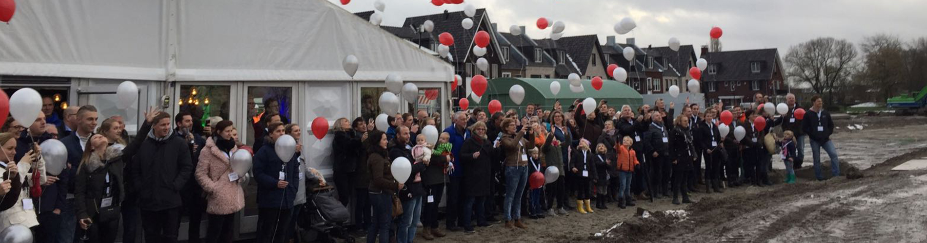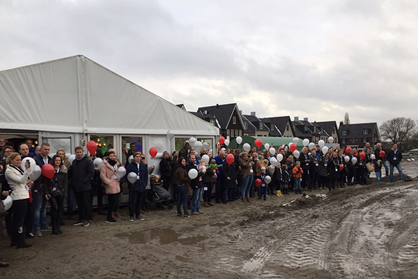 Afgelopen woensdagmiddag 13 december 2017 werd de start van deelplan 3 van het nieuwbouwproject Ringoevers in Hillegom feestelijk gevierd. De opkomst was enorm. Nagenoeg alle kopers en projectbetrokkenen waren aanwezig op dit gezellige evenement. Met dit feestelijke moment is het heiwerk van de 77 woningen gestart. Wethouder Verheijen van Ruimtelijke Ordening gaf samen met Jack Groen (directeur Bouw HBB Groep, namens BuildingTwenty4) en koper mevrouw A. Kuloglu in het bijzijn van de projectbetrokkenen en de kopers het officiële startschot. Na het officiële gedeelte konden de kopers onder het genot van warme erwtensoep kennismaken met hun toekomstige buren.
