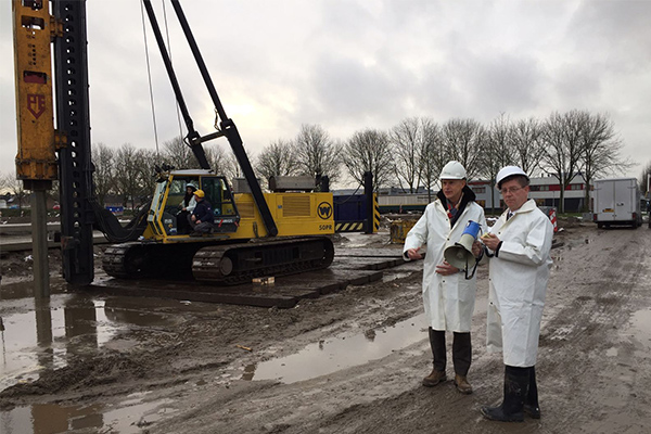 Wethouder Verheijen is ook trots op de kwaliteit van de nieuwe wijk en sprak zijn complimenten uit richting het bouwteam. Een nieuwe wijk voor Hillegom. De kopers komen niet alleen uit Hillegom, vele andere dorpen en steden zijn in Ringoevers vertegenwoordigd, Amsterdam, Haarlem, de omliggende dorpen. Wethouder Verheijen kondigde de koopster in Deelplan 3, mevrouw Kuloglu, aan. Het was aan haar de eer om de eerste officiële heipaal te slaan. Na afronding van de speeches klom zij in de heistelling en op het startsein van de wethouder startte zij het slaan van de heipaal. Onder luid gejuich van de aanwezigen werd de paal de grond in geslagen.