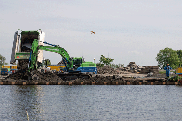 - Per schip aanvoeren schone grond t.b.v. leeflaag (ca. 50.000 ton)