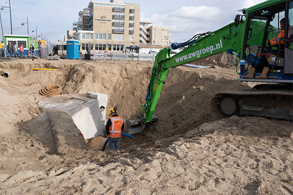 Een bijzondere opdracht! Op ons project in Noordwijk kwamen wij tijdens onze graafwerkzaamheden een Atlantikwall tegen. Een stukje geschiedenis dat wij samen met onze opdrachtgever graag wilden behouden. Daarom hebben wij twee delen van deze Atlantikwall uit grond gehaald. Voor alle toeschouwers en media spectaculair om naar te kijken.