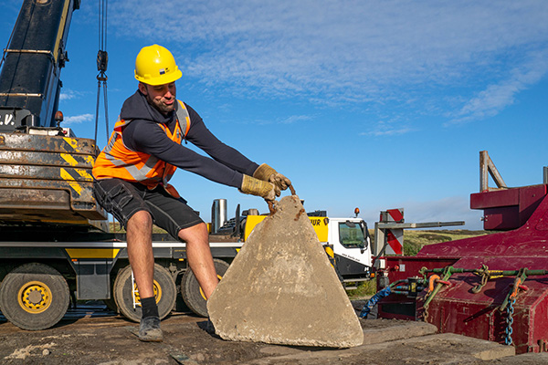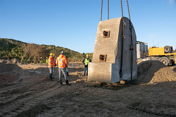 Twee zware delen van de Atlantikwall uit de grond gehaald