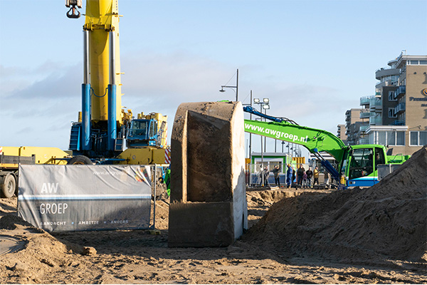 Twee enorme delen met een doorsnede van 8 m2 den een dikte van 1,5 meter zijn donderdag uit de bouwput gehaald. Het totale gewicht van deze twee delen ligt rond de 30 ton. Het zijn delen van de Atlantikwall die is gebouwd tijdens de Tweede Wereldoorlog door de bezetter.